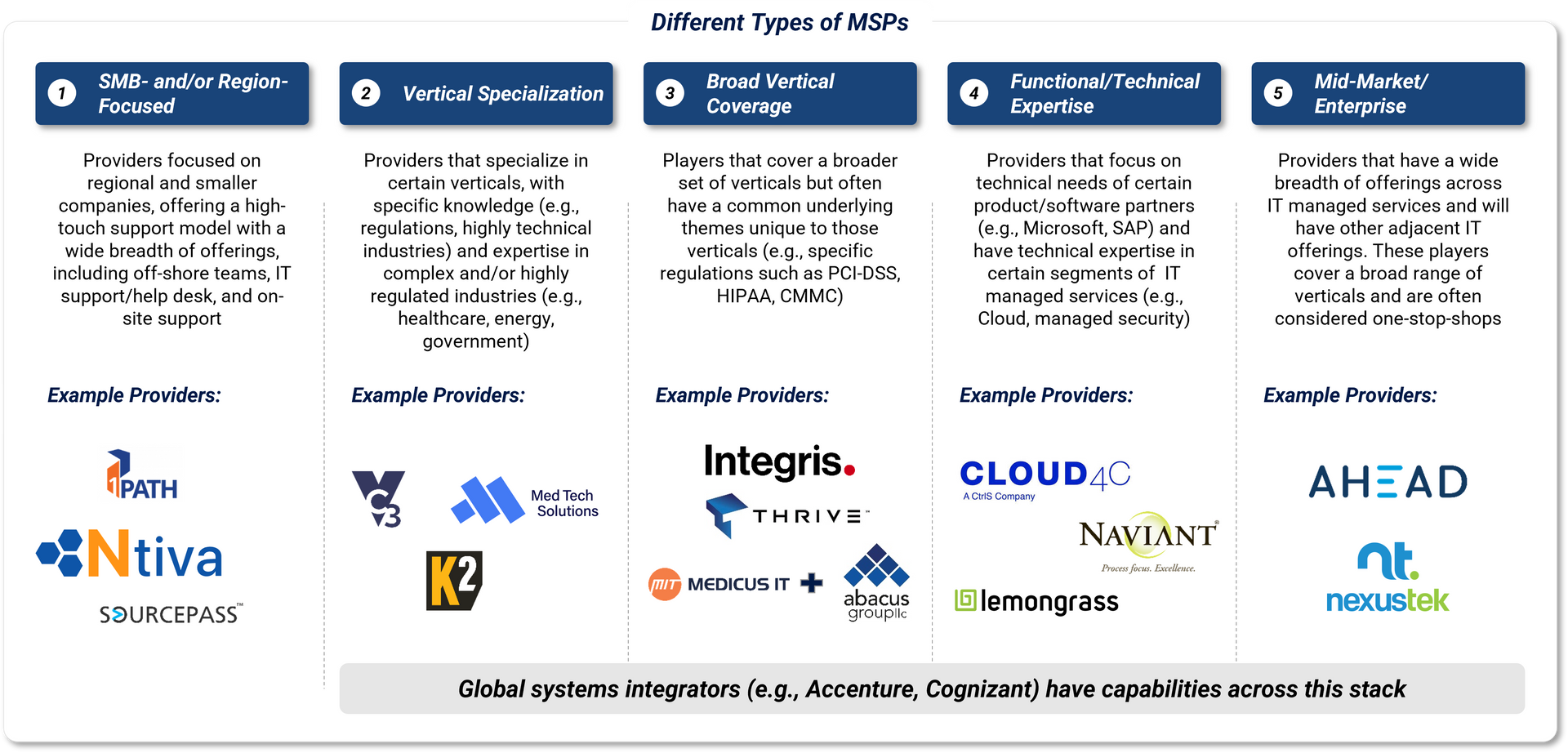 While these categories are not strictly MECE, each represents a distinct way to play in the MSP market and highlights a different strategic positioning.
