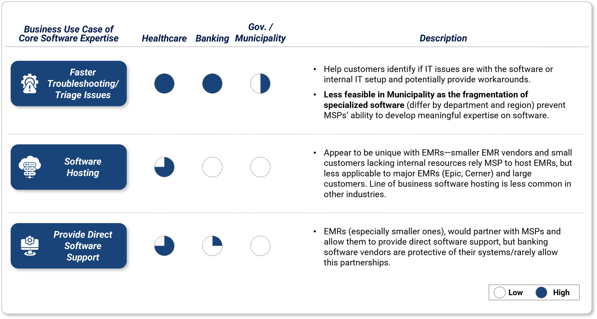 - The gist is to understand the depth of the verticalization: Does the MSP have a true moat and differentiated business use case within a vertical, or are they only superficially aligned (leveraging reputation and vertical branding to aid GTM)?